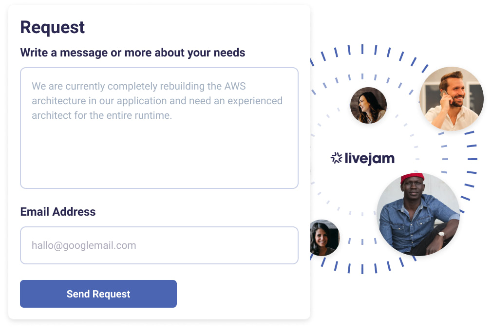 A company does not have all the competences within its team, so that in some projects they have to resort to external experts. You can ask Livejam for the necessary competence and receive a suitable coach from the platform.