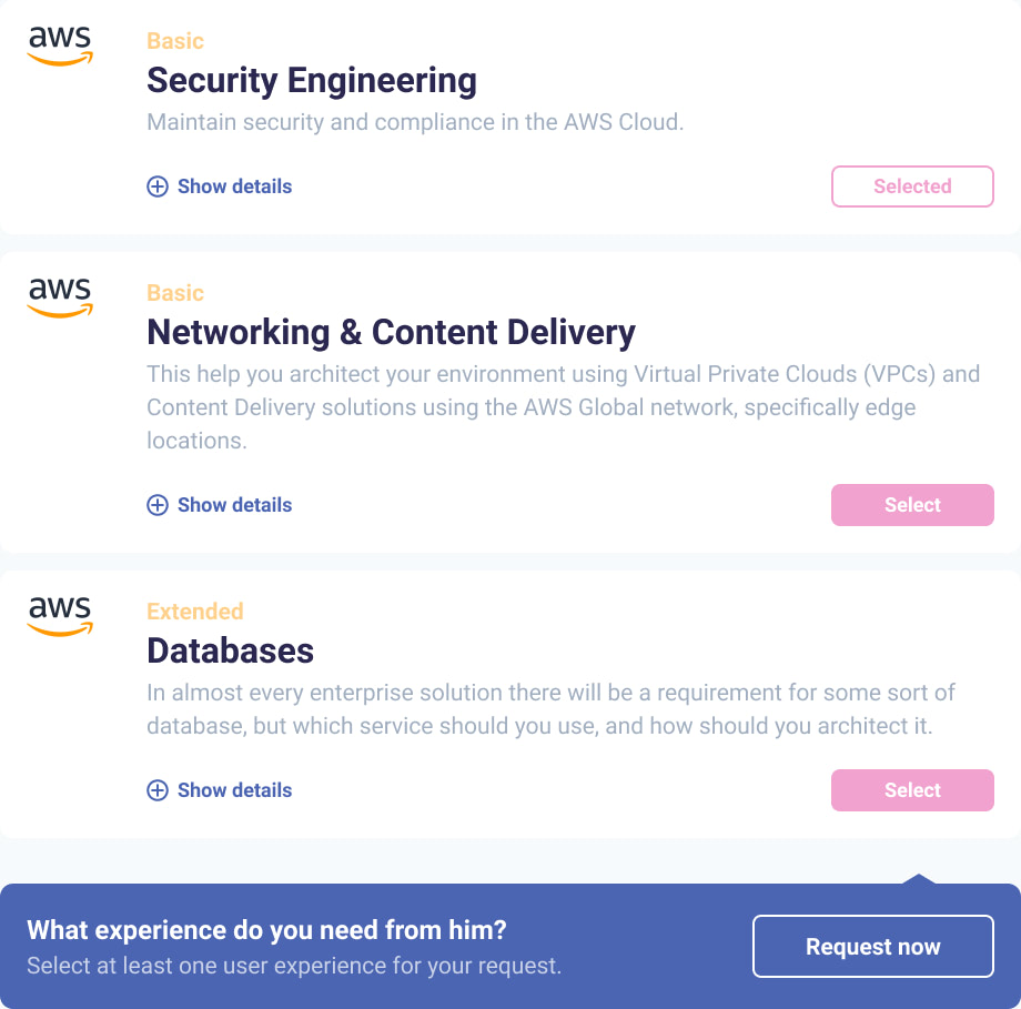 A package of experiences bundles many topics that a coach has to offer. As a company, you can select these and ask the coach directly.