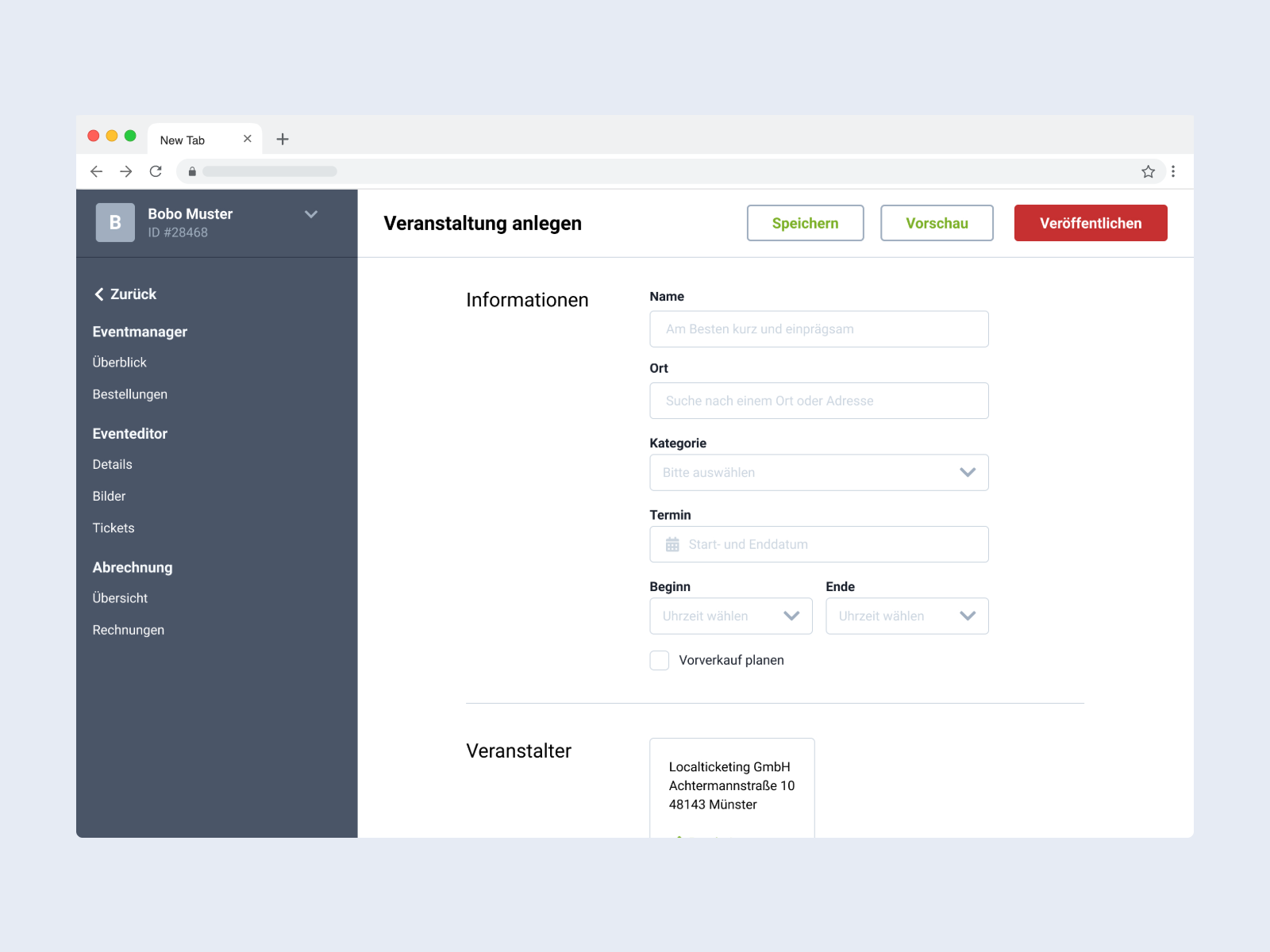 For the further development of the Localticketing platform I developed a process that enables the user to create events independently.