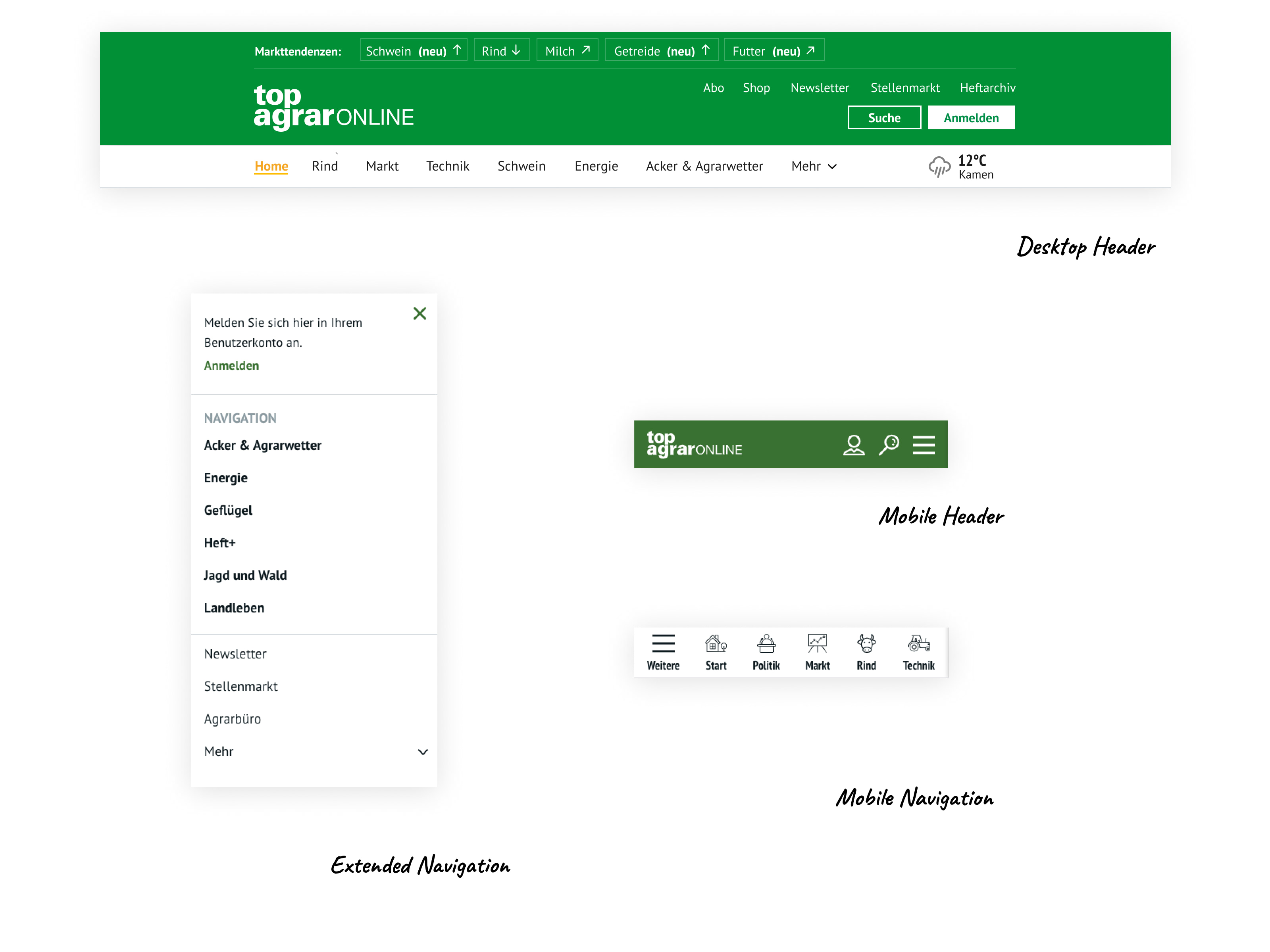 In the concept phase I talked to many different stakeholders like product owners, editors, publishers etc. and later presented my designs. I also took over the technical conception of the CSS architecture.
